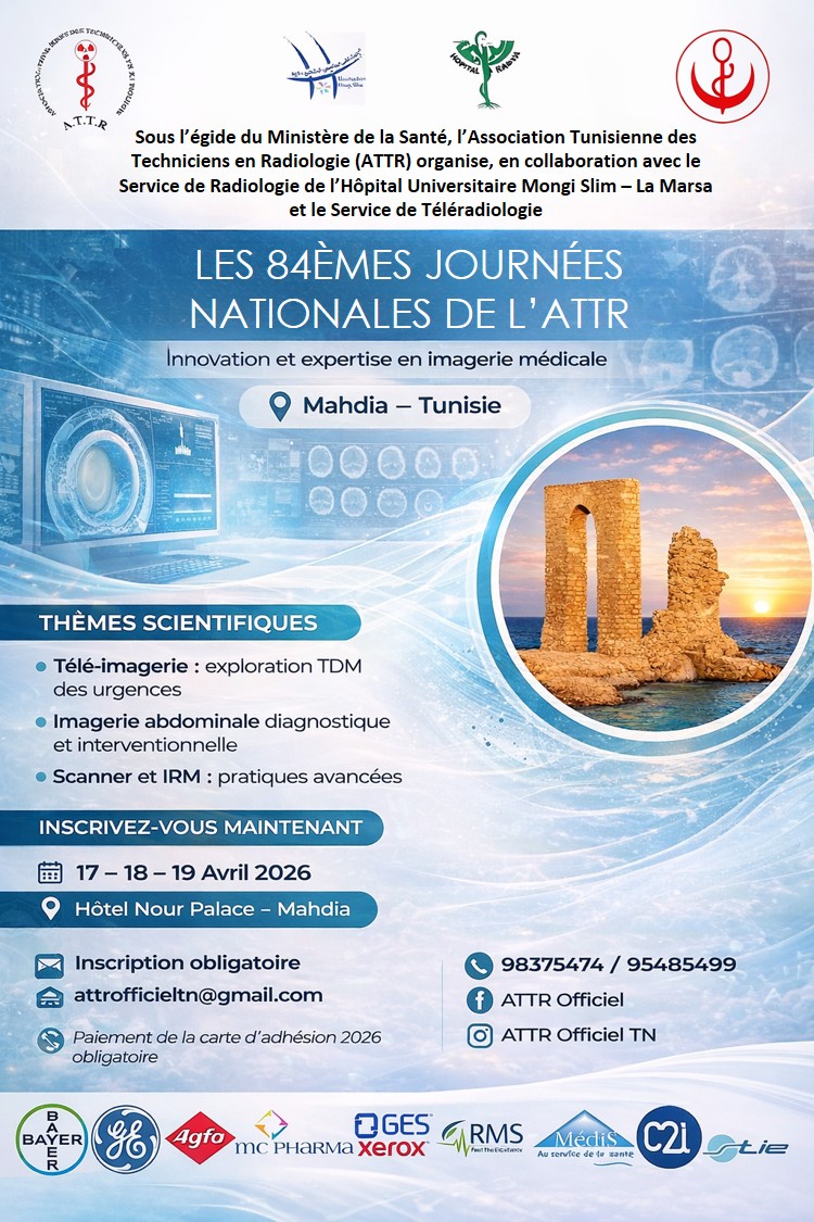 The Tunisian Association of Radiology Technicians (ATTR), in collaboration with the Tele-imaging Department and Mongi Slim University Hospital La Marsa, organizes: